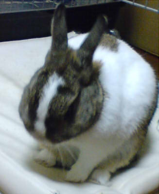 文字ばかりじゃ殺風景なので、親バカ写真をアップ。 我が家のうさぎさんです。 昨日の期待が高かった分、今日のテンションは低い。 昨日焼き肉をいっぱい食べたけど、やっぱり何も起こらない。 あまりにテンション低いから更新やめようと思ったけど、一応妊娠中の記録でもあるかなぁと思い直して更新。 朝起きた時から、何か気持ち悪い。 排卵日に気持ち悪くなる時があるんだけど、そんな感じ。 車酔いしてるみたいな。 お腹もずっしり重たくて、歩くのもちょっとつらい。 同じツライなら、陣痛がいいなぁ・・・。 出産時、よりクリアな視界でカズナを見たいなあ、と思ってメガネを新調しに行きました。 ちょっと度が合わなくなっていたのもあったので。 でも、乱視がひどく、特注になるので1週間かかります、と言われた(泣)。 ますますテンションダウン。 でも食欲はあって、今日もご飯はおいしくいただきました^^; ご飯がおいしいうちは大丈夫か。