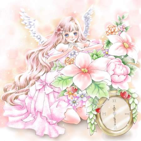 「お絵描き共和国♪」にて 線画提供:翠蓮さん テーマ:ふんわり、優しく、温かく 2月、アルコール量が増え、心がすさみがちだった月。 やっと少し心が穏やかになってきた今日この頃。 心がすさんでいたから、反対に、こういった塗りをしたいと思ったんだと思う。 そしてこちらの無垢な美しさのある線画をお借りしようとおもったんだろうな。 中学生の頃、某少女漫画家さんの塗りが大好きで憧れたことがありました。 濃淡の付け方が美しくて、塗り残された白が効果的でオーラがあって。 今回、その塗りにちょっとでも近づけたらいいなぁ、なんて思いながら塗りました。 でも、ねー。 どうなんだろ。 一筆一筆の力が弱いような気がする。 アナログとCGの違いもあるかな。 やり直しのきかない水彩画とかのアナログ絵。 一筆に込める思いが全然違うかもね。 魅力のある絵とはなんぞや。 私にそれが描けるのかしら。 無駄に思い悩んでいる今日この頃。 新たに絵が描きたいとは思えなくてしょぼん、な日々なのでありました。
